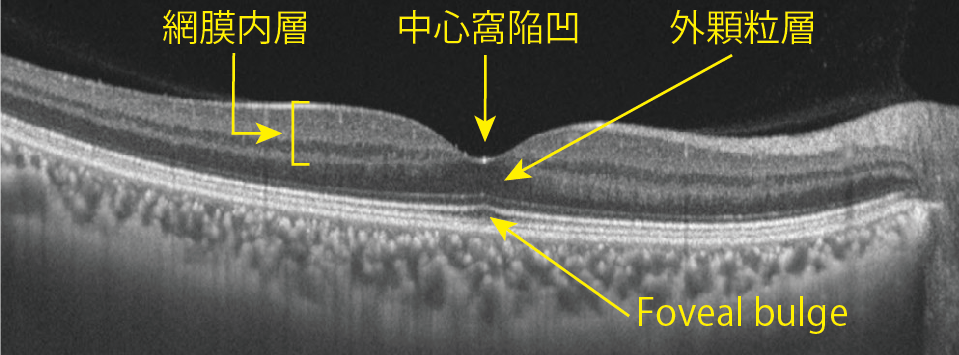 発生過程で、網膜内層の神経細胞が中心窩から遠心性に周辺に移動するためで、その結果として